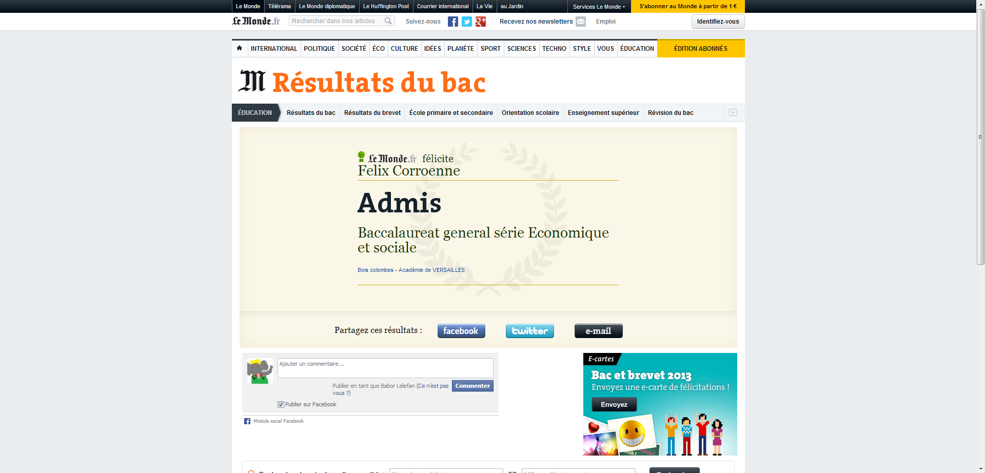 Bravo Felix ! (pour ton bac, pas pour ton prénom de paté pour chat).