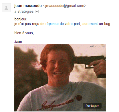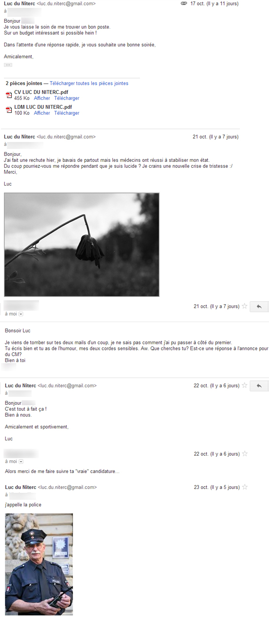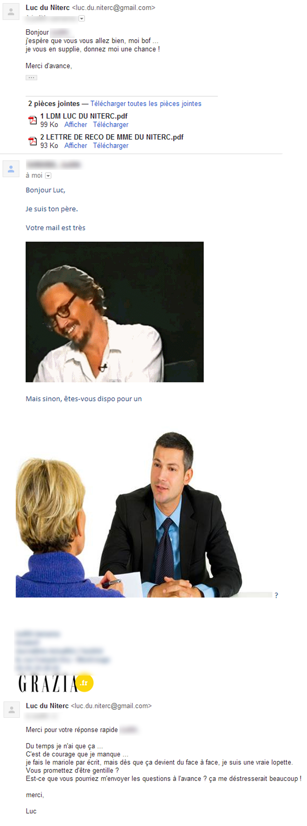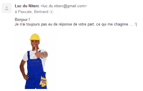 10. Le harcèlement n’est pas de la motivation luc et je ne pense que cela puisse marcher. Elle est gentille quand même laure, elle est resté pro jusqu’au bout. N’importe qui aurait pété un cable avec ces mails incessantes lol. Je dois avouer que le coup du « Alaure lors? » m’a fait bien rigolé. merci niterc