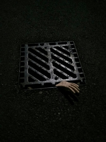 Les Croates semblent cependant avoir un certain sens de l’humour, je l’ai vite compris en voyant cette fausse scène de crime créée de toute pièce avec seulement un gant en plastique et une bouche d’égout :