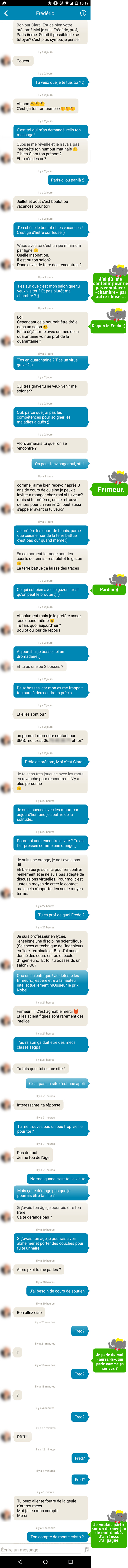 Je me suis échauffé un peu avec avec Frédéric, un jeune prof de 40 ans, avec qui j’ai voulu voir si on pouvait conclure en ne faisant que des jeux de mots totalement nuls à chier.