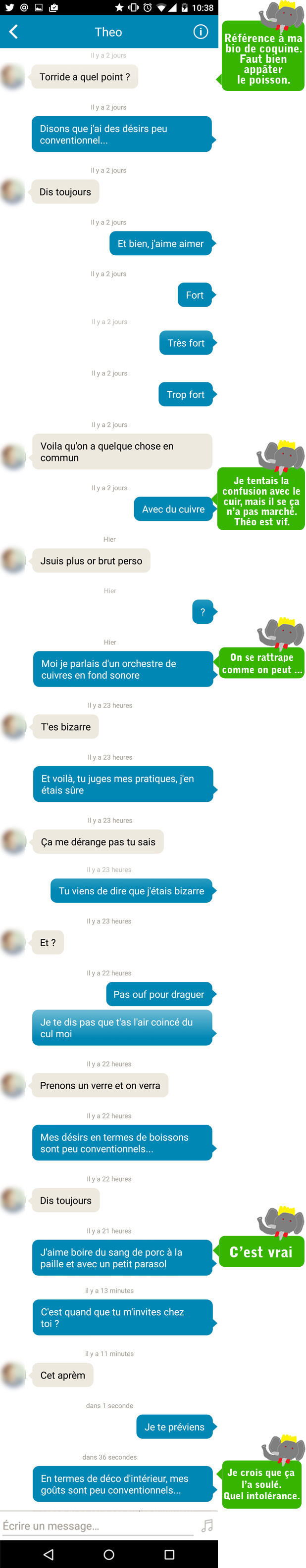 1. Hahaha c’est vrai que c’est méchant mais c’est vrai que le « si il as accepter le rendez vous aussi vite c’est juste pour me sauter » en tout cas Je trouve sa bien que dans tes articles tu as du « concrêt » quand tu prend les gens pour du jambon ;D