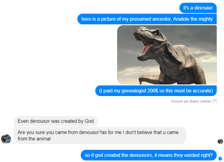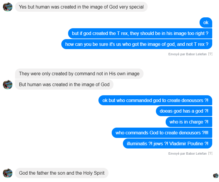 Une meuf arrêtait pas spammer ma page facebook avec des extrait de la Bible, j’ai décidé de lui répondre (ça continue après le « shut the fuck up » hein)